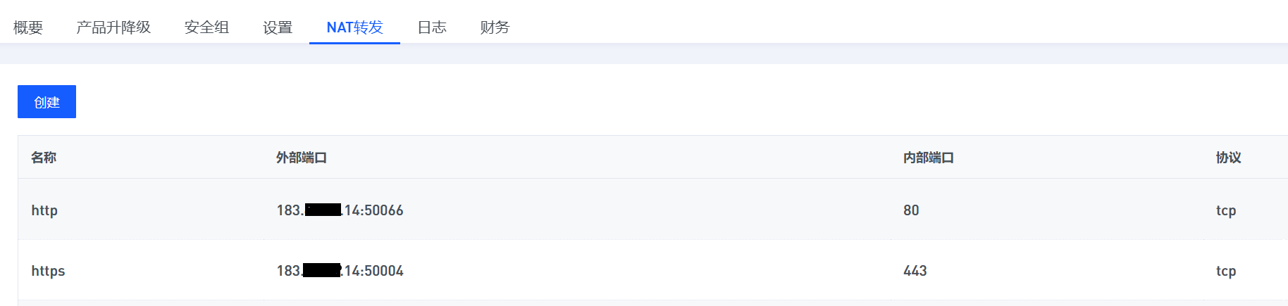 配置方法:在您购买vps的服务平台为您的vps设置 IP:端口——>443/IP:端口——>80的转发配置
